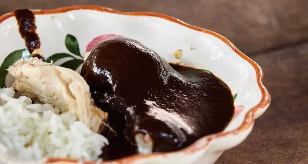 Oaxaca es conocida como la tierra de los siete moles, y con razón. Este platillo combina más de 30 ingredientes, entre ellos chiles, cacao, especias y frutos secos, para lograr una salsa densa, compleja y profundamente aromática.