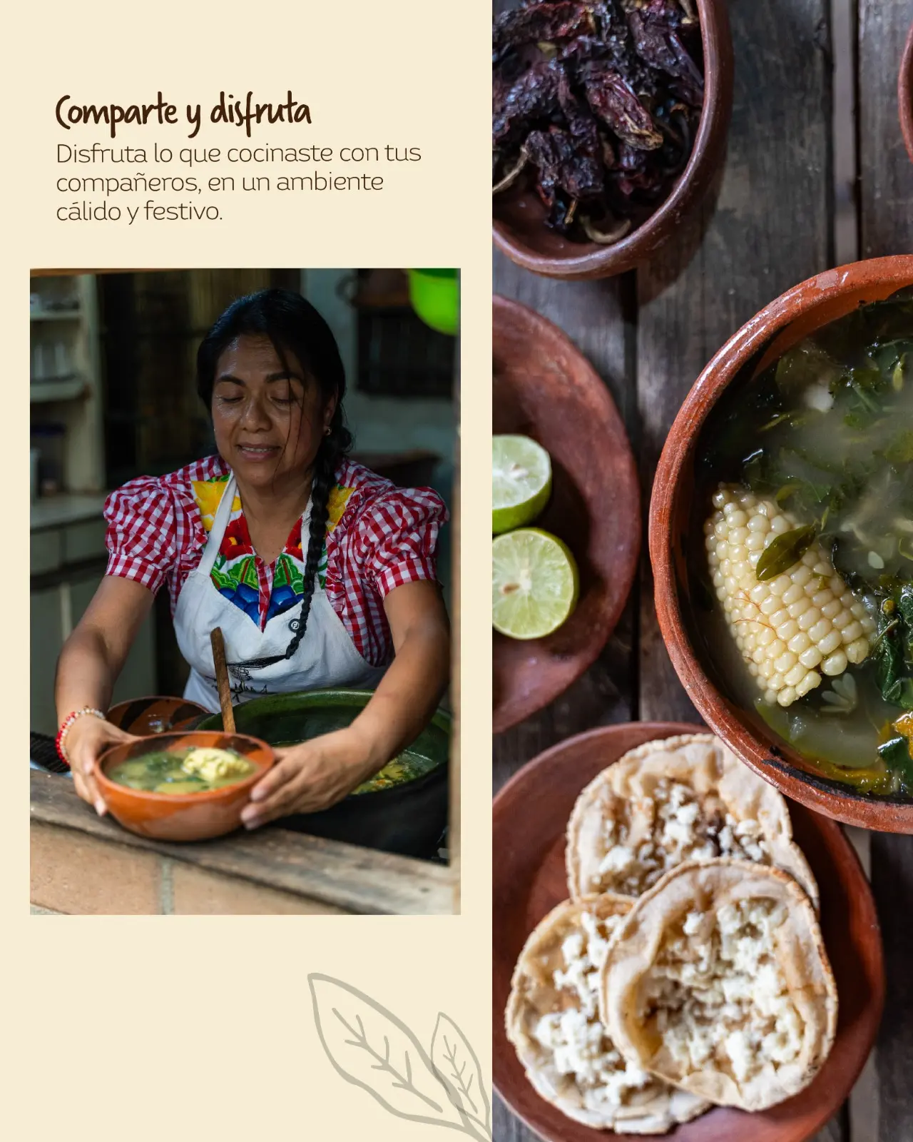 Vive una auténtica experiencia culinaria oaxaqueña llena de sabores, aromas y tradición con expertos en gastronomía local. Durante estas clases de cocina, aprenderás a preparar una comida completa con los platillos que representan orgullosamente al estado de Oaxaca.