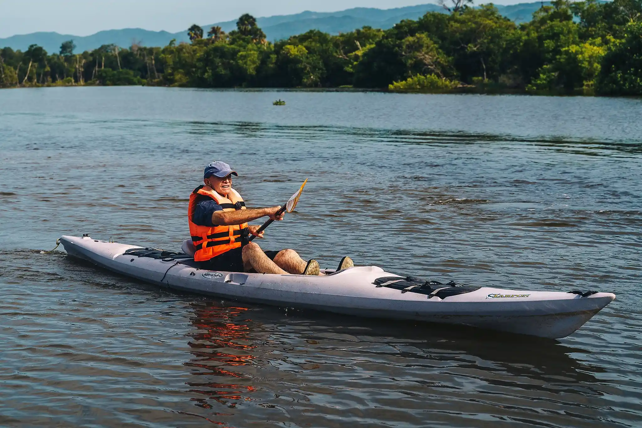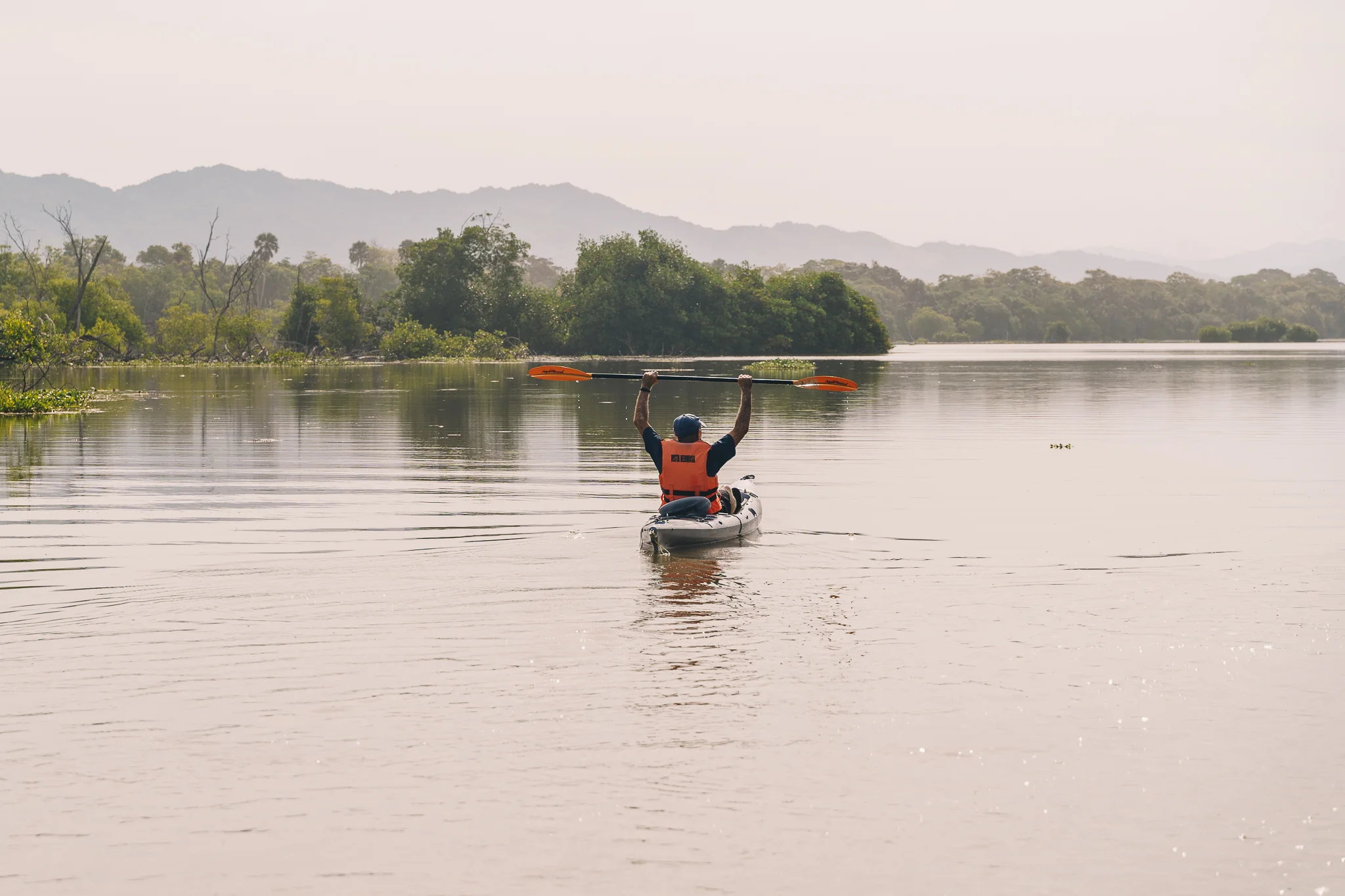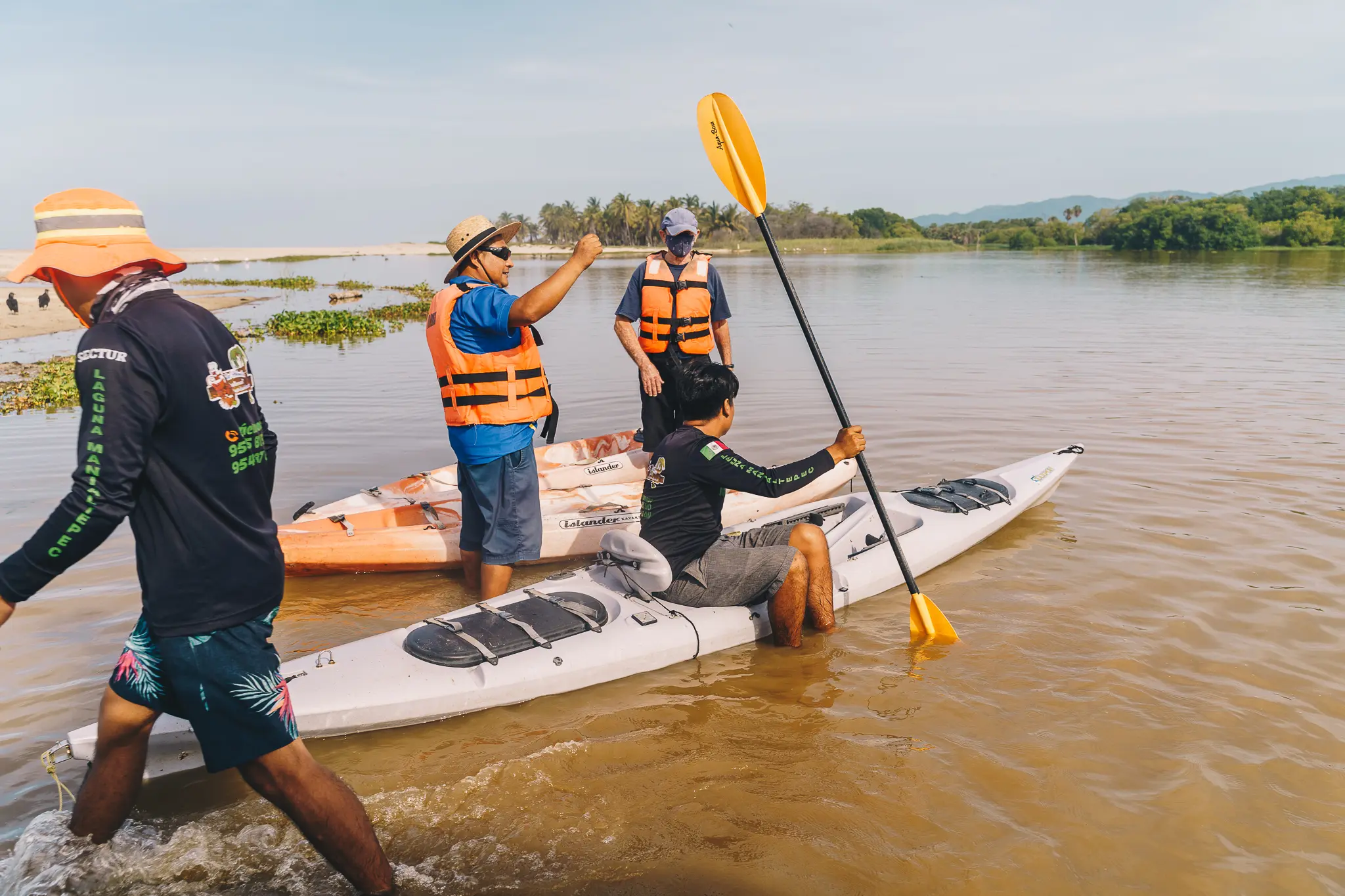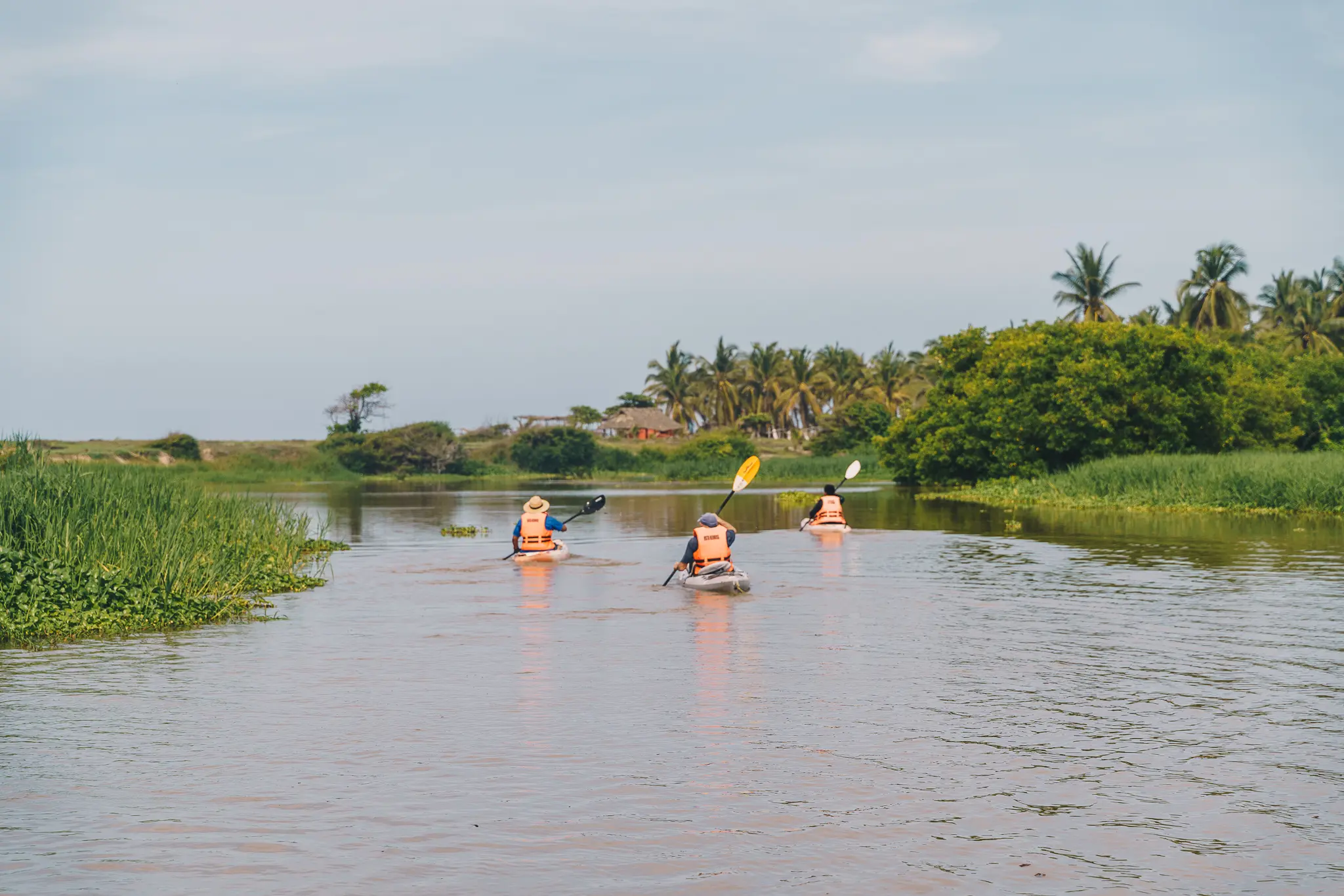 Cruzarás las aguas dulces del río Manialtepec que alimentan la laguna, y tomarás un merecido descanso en la playa de Puerto Suelo. El regreso será en kayak o lancha, según prefieras.