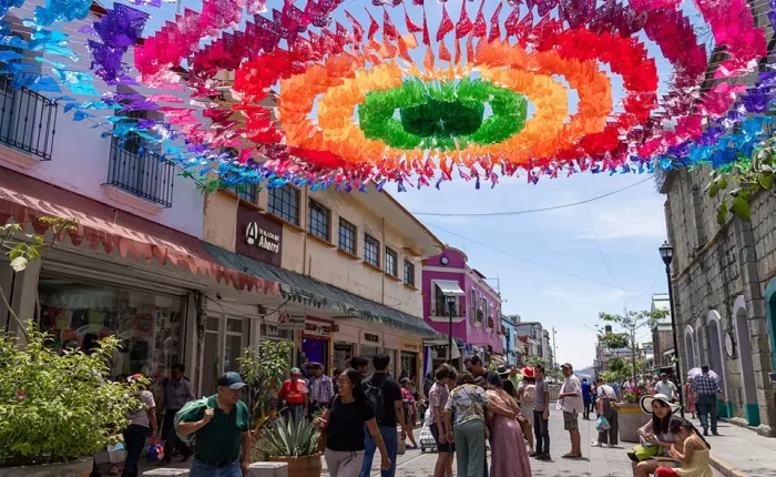 Reúnete con tu guía en la explanada de la iglesia de La Merced. El guía llevará un polo azul real y amarillo con el logotipo de Paraíso Oaxaca.