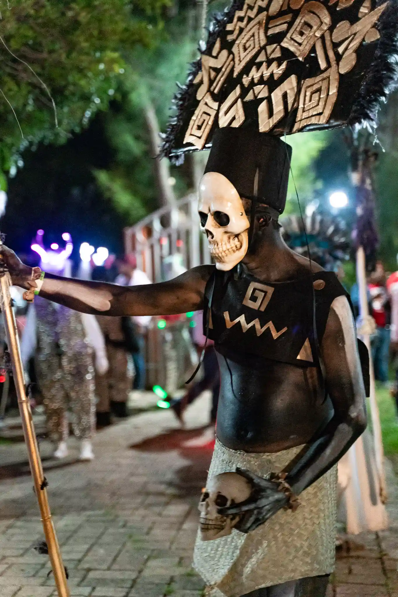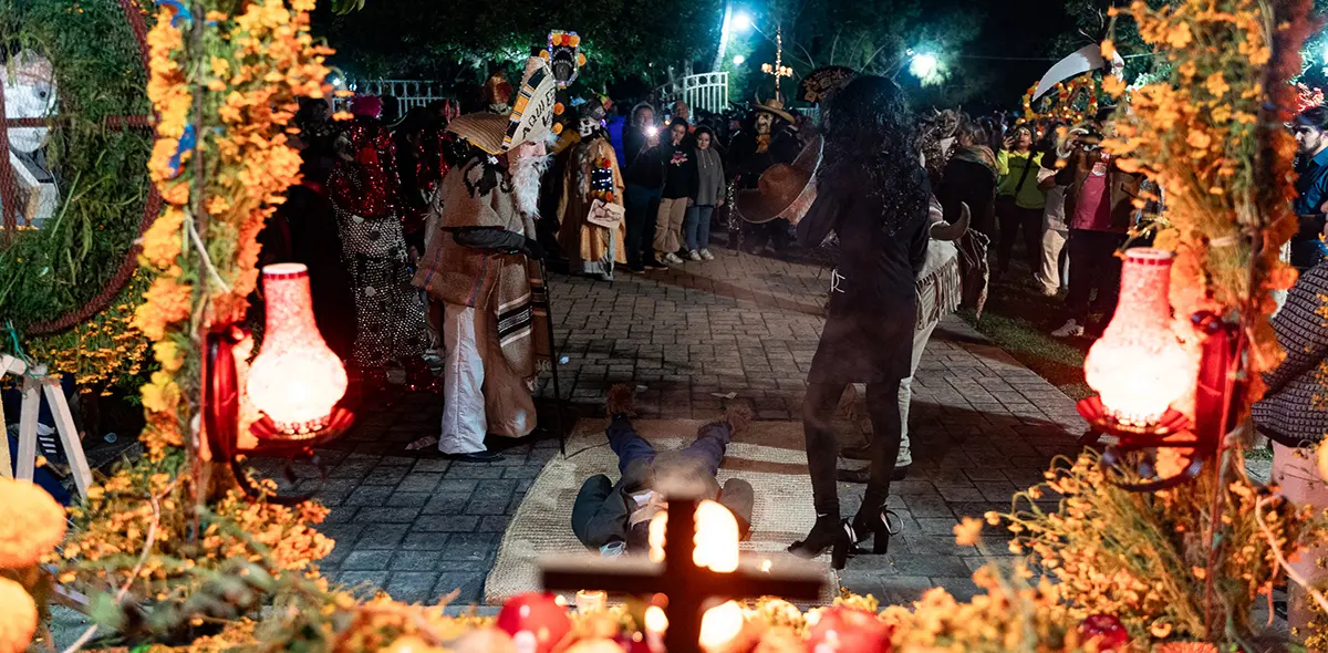 Al ritmo de música en vivo y rodeados de la calidez de la comunidad, los visitantes son bienvenidos a formar parte de esta festividad, que invita a reír, reflexionar y celebrar. Entre danzas y representaciones, La Muerteada honra a los seres que han partido, manteniendo viva una tradición que resuena con la esencia del Día de Muertos en Oaxaca.