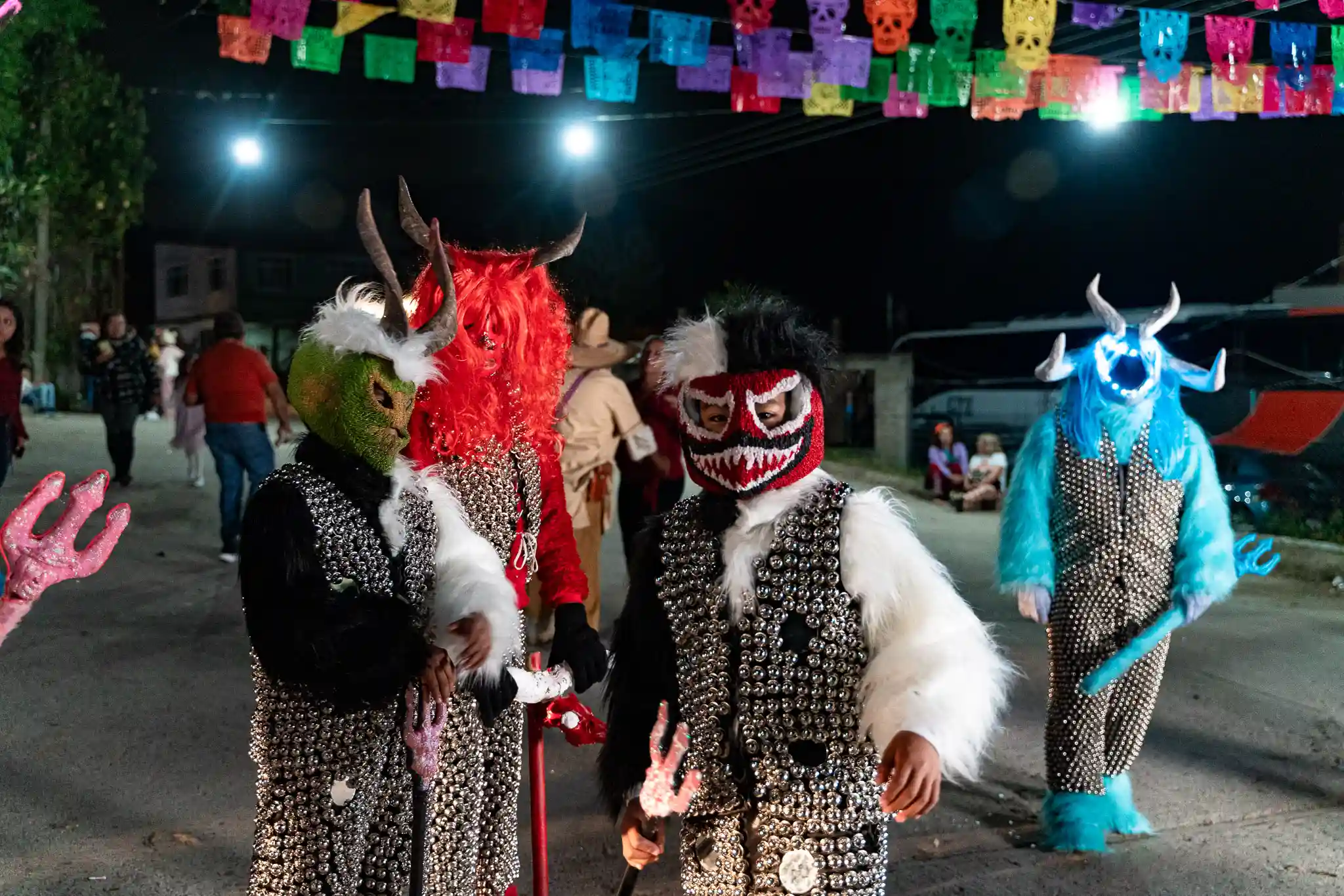 Viva la auténtica tradición oaxaqueña en la emblemática celebración de «La Muerteada», una experiencia que transforma la noche del 1° de noviembre en el pueblo de Etla, ubicado a aproximadamente una hora del centro de Oaxaca. Este pueblo se llena de vida y color con su comparsa, un desfile vibrante que une a los habitantes y visitantes en un tributo lleno de magia y tradición a sus seres queridos.
